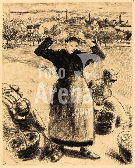 alb3732828 Gathering Potatoes (Recolte de pommes de terre). Dated: 1886. Dimensions: plate: 27.5 x 21.9 cm (10 13/16 x 8 5/8 in.) sheet: 47.2 x 34.5 cm (18 9/16 x 13 9/16 in.). Medium: drypoint and aquatint. Museum: National Gallery of Art, Washington DC. Author: CAMILLE PISSARRO.