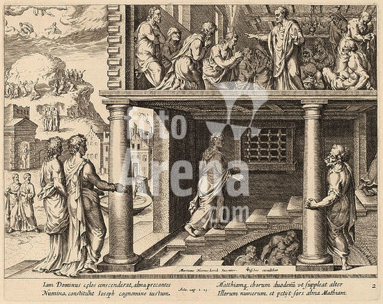 alb3732868 The Choosing of Saint Matthias. Medium: engraving. Museum: National Gallery of Art, Washington DC. Author: Philip Galle after Maerten van Heemskerck.