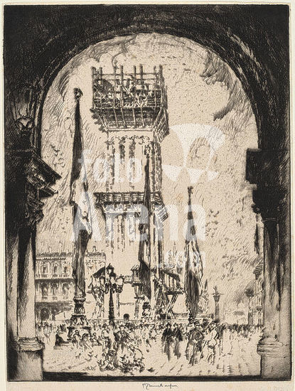 alb3734010 Rebuilding the Campanile, Venice, No.I. Dated: 1911. Medium: etching. Museum: National Gallery of Art, Washington DC. Author: Joseph Pennell.