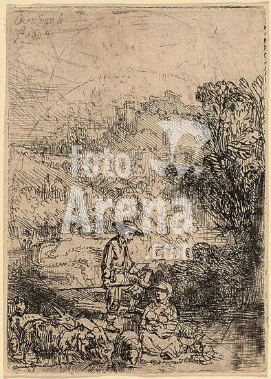 alb3734092 The Shepherd and His Family. Dated: 1644. Medium: etching. Museum: National Gallery of Art, Washington DC. Author: Rembrandt Harmensz van Rijn.