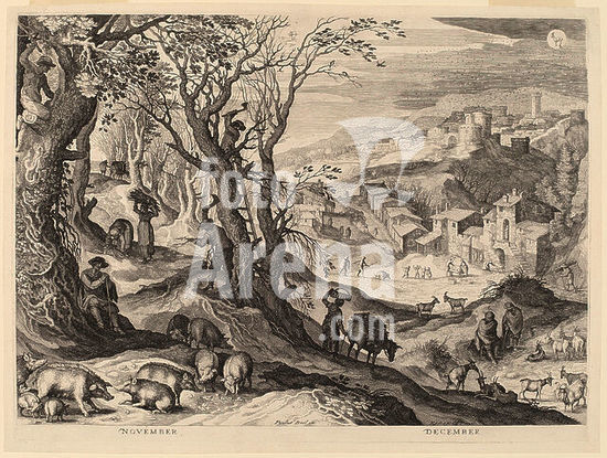 alb3736943 November and December. Dated: 1615. Dimensions: plate: 37.5 x 50.1 cm (14 3/4 x 19 3/4 in.) sheet: 39.2 x 52.1 cm (15 7/16 x 20 1/2 in.). Medium: engraving on laid paper. Museum: National Gallery of Art, Washington DC. Author: Aegidius Sadeler II after Paul Bril.