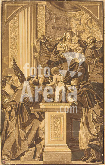 alb3736979 Holy Family and Four Saints. Dated: 1739. Medium: chiaroscuro woodcut in yellow, green-gray, dark brown, and dark-gray. Museum: National Gallery of Art, Washington DC. Author: John Baptist Jackson after Veronese.