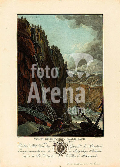 alb3736981 Vue du Schild-Wald-Bach prise en Hyver. Dated: 1785. Dimensions: plate: 44.5 x 32 cm (17 1/2 x 12 5/8 in.) sheet: 48.2 x 33.5 cm (19 x 13 3/16 in.). Medium: wash manner printed in four colors on wove paper. Museum: National Gallery of Art, Washington DC. Author: Charles-Melchior Descourtis after Caspar Wolf.
