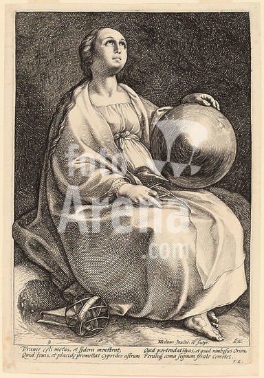 alb3737461 Urania. Dated: probably 1592. Dimensions: plate: 24.7 x 16.8 cm (9 3/4 x 6 5/8 in.) sheet: 25.8 x 18 cm (10 3/16 x 7 1/16 in.). Medium: engraving. Museum: National Gallery of Art, Washington DC. Author: Hendrik Goltzius.