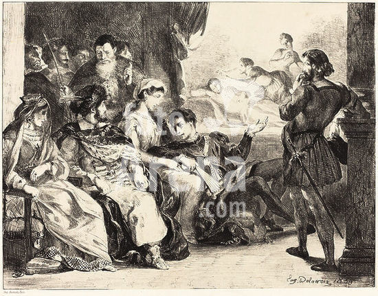 alb3738215 Players Enacting the Poisoning of Hamlet's Father (Act III, Scne II). Dated: 1835. Medium: lithograph. Museum: National Gallery of Art, Washington DC. Author: EUGENE DELACROIX.