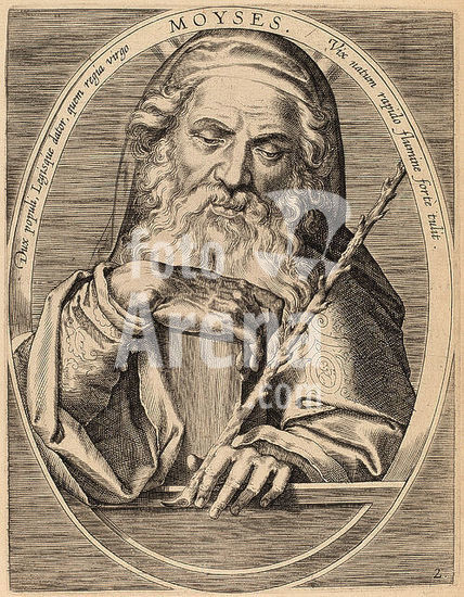 alb3738665 Moses. Dated: published 1613. Dimensions: plate: 17.4 x 13.4 cm (6 7/8 x 5 1/4 in.) sheet: 24.3 x 18.8 cm (9 9/16 x 7 3/8 in.). Medium: engraving on laid paper. Museum: National Gallery of Art, Washington DC. Author: Theodor Galle after Jan van der Straet.