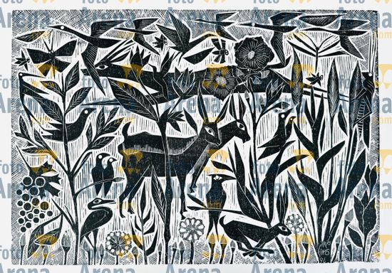 CIRO2603251392 Título: Pastoral. Nossa fauna brasileira.. Técnica: xilogravura. Dimensões: 86 cm x 60 cm. Imagem feita com celular. Acervo pessoal