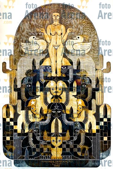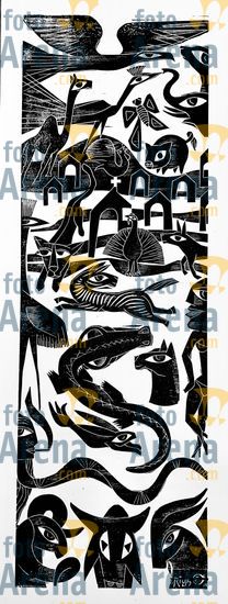 CIRO2603259164 Título: Fantasia da Redenção. Inspirada no Sertão do Nordeste. Técnica: xilogravura. Dimensões: 65 cm x 96 cm. Imagem feita com celular. Acervo pessoal