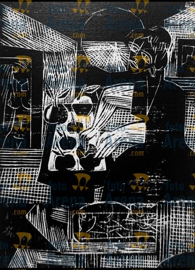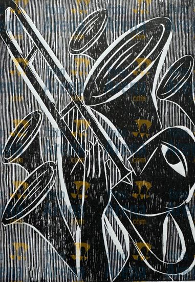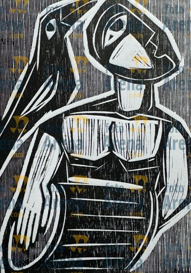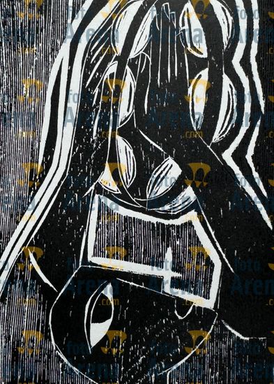 CIRO2603252371 Título: Vendado. Pessoal com venda nos olhos. Técnica: xilogravura. Dimensões: 40 cm x 30 cm. Imagem feita com celular. Acervo pessoal