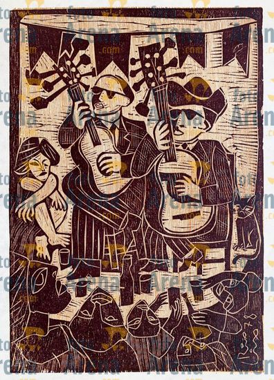 CIRO2603257004 Título: Desafio. Desafio de viola nordestino. Técnica: xilogravura. Dimensões: 96 cm x 65 cm. Imagem feita com celular. Acervo pessoal