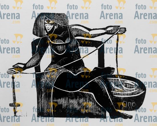 CIRO2603254912 Título: Mulher com fuso. Integra o classico album "Nordeste" lançado no ano de 2024, junto com outras 9 artes. . Técnica: xilogravura. Dimensões: 40 cm x 30 cm. Imagem feita com celular. Acervo pessoal