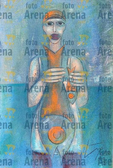 CIRO2603255969 Título: Pescaria. Tela pequena que representa a pescaria artesanal. Técnica: pintura acrilica sobre tela. Dimensões: 30 cm x 40 cm. Imagem feita com celular. Acervo pessoal