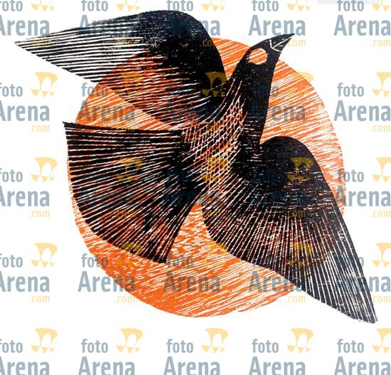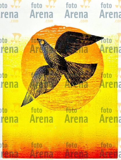 CIRO2603257877 Título: Aurora. Grauna no entardecer. Técnica: xilogravura. Dimensões: 30 cm x 40 cm. Imagem feita com celular. Acervo pessoal