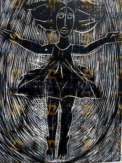 CIRO2603254802 Título: Uirapuru. Canto do Passaro amazonico. Técnica: xilogravura. Dimensões: 30 cm x 40 cm. Imagem feita com celular. Acervo pessoal
