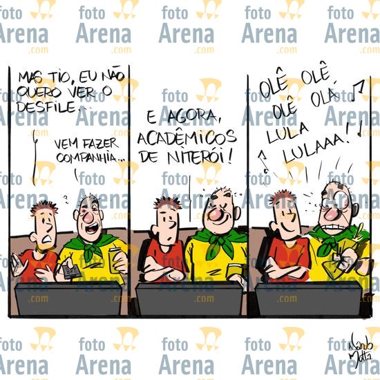 NAN2602242503 NANDO MOTTA, EPISÓDIOS SOCIAIS E POLÍTICOS, REDES SOCIAIS, 16.02.2026. Carnaval (desfile na TV)Dois homens assistindo o desfile das escolas de samba do carnaval pela TV.Mas tio, eu não quero ver o desfile...Vem fazer companhia...E agora, Acadêmicos de Niterói! Olê, Olê, Olê, Olá, Lula, Lulaaa!!