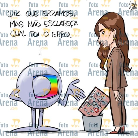 NAN2603252378 NANDO MOTTA, EPISÓDIOS SOCIAIS E POLÍTICOS, REDES SOCIAIS, 24.03.2026.Desculpas esfarrapadas.Representação da jornalista Andrea Sadi com o logo da rede de TV, Rede Globo.Diz que erramos, mas não esclareça qual foi o erro.