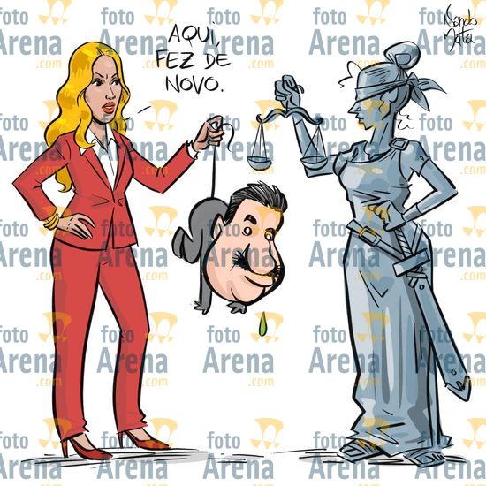 NAN2603187649 NANDO MOTTA, EPISÓDIOS SOCIAIS E POLÍTICOS, REDES SOCIAIS, 13.03.2026.Erika e Ratinho.Representação da Deputada Federal Erika Hilton, o apresentador de TV Carlos Massa (Ratinho) e a estátua da justiça.Aqui, fez de novo.