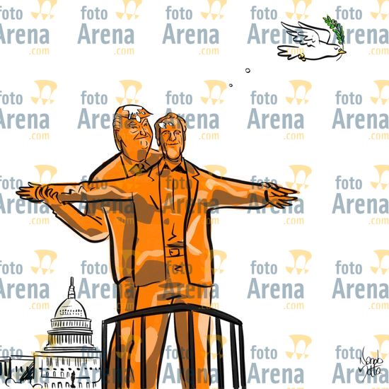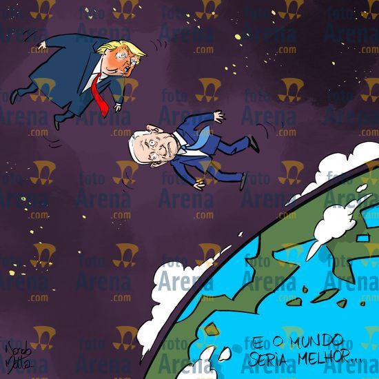 NAN2603182578 NANDO MOTTA, POLÍTICA INTERNACIONAL, REDES SOCIAIS, 02.03.2026.Fora!Representação de Donald Trump e Benjamin Netanyahu fora do Planeta Terra.E o mundo seria melhor...
