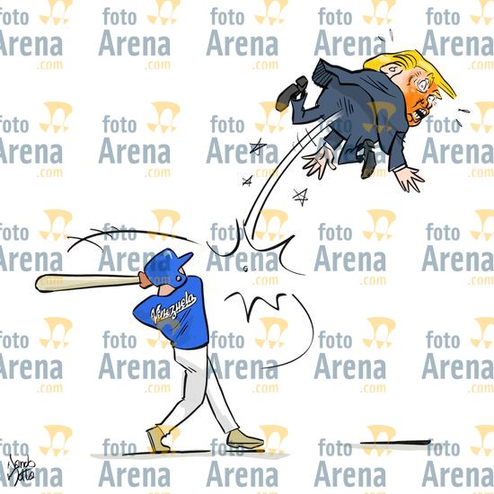 NAN2603251932 NANDO MOTTA, POLÍTICA INTERNACIONAL, REDES SOCIAIS, 18.03.20256.Abraço.Representação de um jogador venezuelano dá uma tacada com um taco de baisebol em Donald Trump. O evento citado é que a Venezuela fez história ao conquistar pela primeira vez o Mundial de Basebol contra os Estados Unidos.