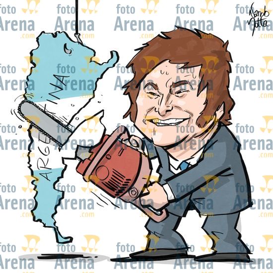 NAN2602241453 NANDO MOTTA, POLÍTICA INTERNACIONAL, REDES SOCIAIS, 17.02.2026.MileiRepresentação do presidente da Argentina, Javier Milei, usando uma moto-serra.