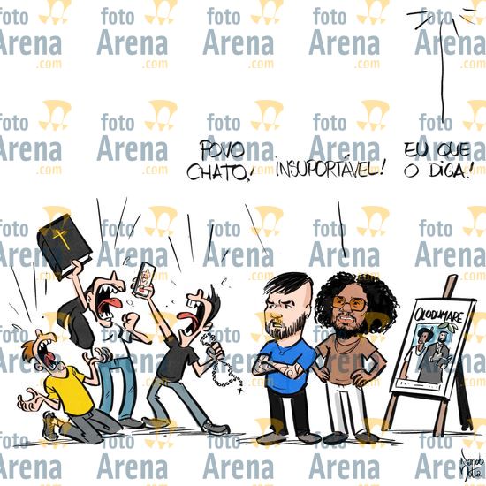 NAN2603253272 NANDO MOTTA, FANATISMO, REDES SOCIAIS, 23.03.20256.Santineli.Representação do ex-comediante Tiago Santineli e o humorista Luis Titoinn falando sobre pessoas gritando.- Povo chato!- Insuportável!- Eu que o diga!