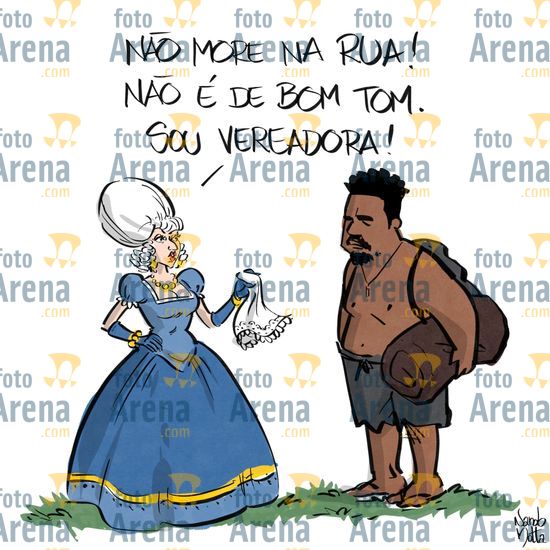 NAN2602242985 NANDO MOTTA, CRÍTICA SOCIAL E POLÍTICA, REDES SOCIAIS, 12.02.2026. Vereadora de ricoMulher com vestimenta burguesa critica homem em situação de vulnerabilidade.Não more na rua! Não é de bom tom. Sou vereadora!