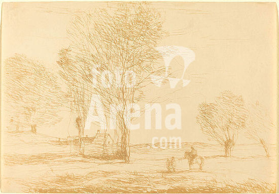 alb3698541 Horseman Halted in the Countryside (Cavalier arrete dans la campagna). Dated: 1874. Medium: cliche-verre. Museum: National Gallery of Art, Washington DC. Author: Jean-Baptiste Camille Corot.