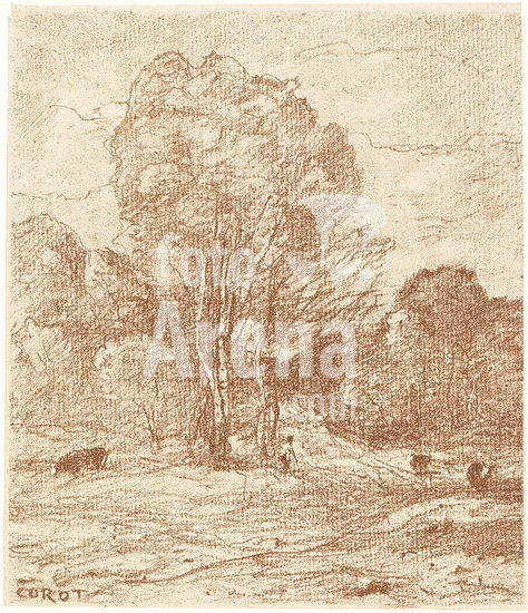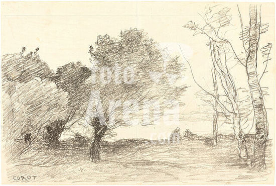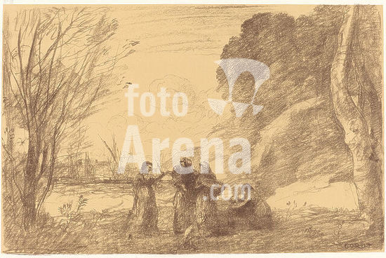 alb3708309 Reading Beneath the Trees (La Lecture sous les arbres). Dated: 1874. Medium: lithograph on yellow paper. Museum: National Gallery of Art, Washington DC. Author: Jean-Baptiste Camille Corot.
