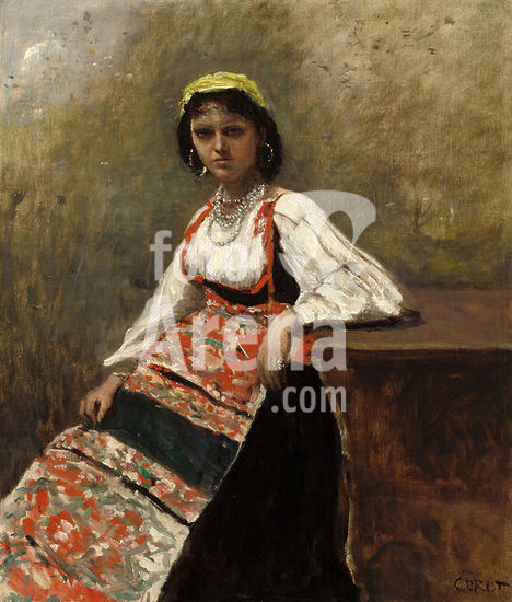 alb3703440 Italian Girl. Dated: c. 1872. Dimensions: overall: 65.2 × 55.1 cm (25 11/16 × 21 11/16 in.) framed: 94.9 x 84.5 x 11.4 cm (37 3/8 x 33 1/4 x 4 1/2 in.). Medium: oil on canvas. Museum: National Gallery of Art, Washington DC. Author: Jean-Baptiste Camille Corot.