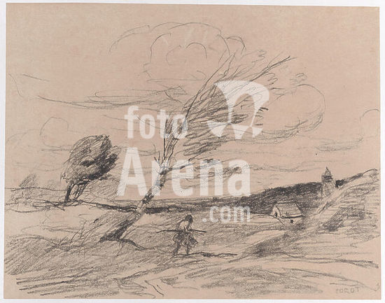 alb3718386 The Gust of Wind (Le Coup de vent). Dated: 1871. Medium: lithograph. Museum: National Gallery of Art, Washington DC. Author: Jean-Baptiste Camille Corot.