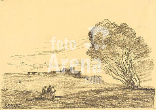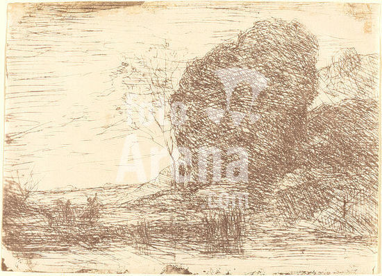 alb4157509 The Isolated Fort. Jean-Baptiste-Camille Corot; French, 1796-1875. Date: 1874. Dimensions: 187 × 270 mm (image); 300 × 465 mm (sheet). Transfer lithograph printed in black on ivory China paper laid down on white wove paper. Origin: France. Museum: The Chicago Art Institute, USA.