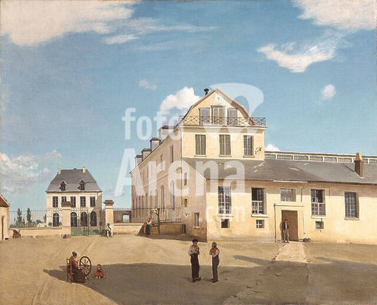 alb3894869 Soissons - Maison d'habitation et fabrique de M. Henry House and Factory of Monsieur Henry. Date/Period: 1833. Painting. Oil on canvas. Height: 32 in (81.4 cm); Width: 39.5 in (100.3 cm). Author: Jean-Baptiste Camille Corot.