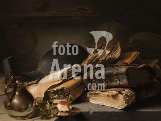 alb4104379 Still Life with Books. Vanitas Still Life. Dating: c. 1627 - c. 1628. Measurements: h 91 cm × w 120 cm. Museum: Rijksmuseum, Amsterdam. Author: Jan Lievens.