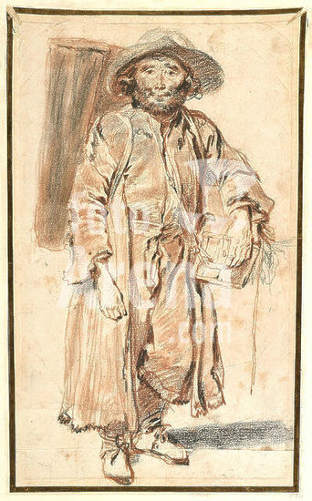 alb4137055 The Old Savoyard. Jean-Antoine Watteau; French, 1684-1721. Date: 1710-1720. Dimensions: 359 x 221 mm. Red and black chalk, with stumping, on buff laid paper, laid down on cream wove card, laid down on cream board. Origin: France. Museum: The Chicago Art Institute, USA.