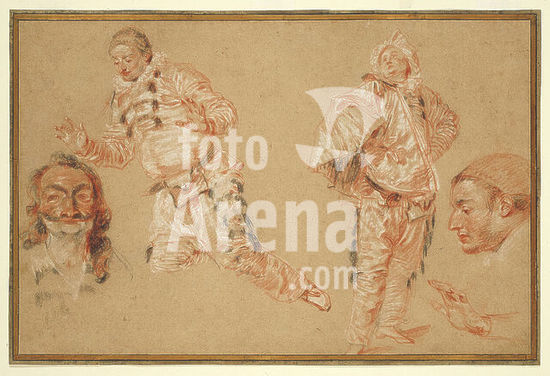 alb4137233 Italian Comedians. Jean Antoine Watteau; French, 1684-1721. Date: 1719-1720. Dimensions: 261 × 403 mm. Red, black, and white chalks, with stumping, on cream laid paper. Origin: France. Museum: The Chicago Art Institute, USA.
