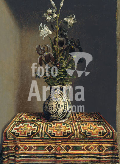 alb4156801 Hans Memling (Seligenstadt, ca. 1435-Bruges, 1494). Flowers in an Jug (verso) (ca. 1485). Oil on panel. 29.2 x 22.5 cm. Museum: Museo Nacional Thyssen-Bornemisza, Madrid.