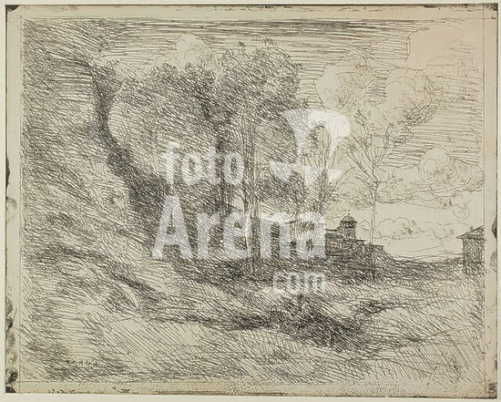 alb3732530 Souvenir of Tuscany (Souvenir de Toscane). Dated: c. 1845. Medium: etching. Museum: National Gallery of Art, Washington DC. Author: Jean-Baptiste Camille Corot.