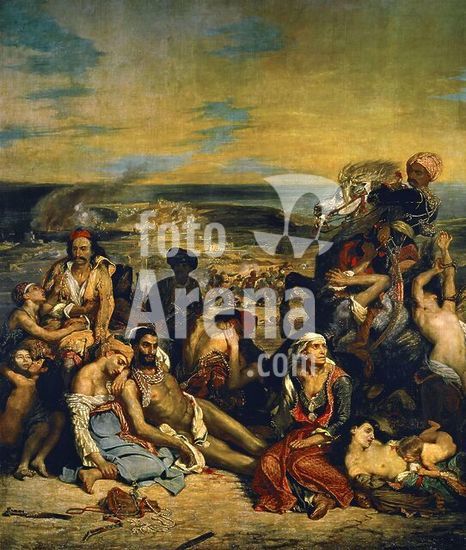 alb2002397 Eugène Delacroix / 'The Massacre at Chios', 1824, Oil on canvas, 417 x 354 cm. Museum: MUSEE DU LOUVRE, BUDAPEST, France.