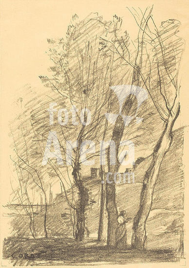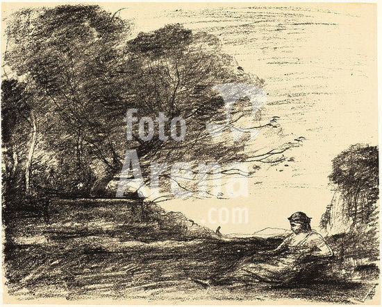 alb3708309 Reading Beneath the Trees (La Lecture sous les arbres). Dated: 1874. Medium: lithograph on yellow paper. Museum: National Gallery of Art, Washington DC. Author: Jean-Baptiste Camille Corot.