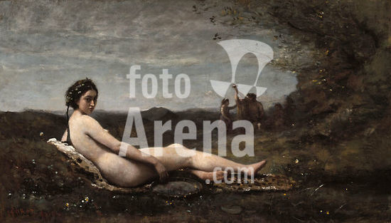alb3714987 Repose. Dated: 1860, reworked c. 1865/1870. Dimensions: overall: 57.8 × 101.6 cm (22 3/4 × 40 in.) framed: 83.8 × 127.3 × 12.1 cm (33 × 50 1/8 × 4 3/4 in.). Medium: oil on canvas. Museum: National Gallery of Art, Washington DC. Author: Jean-Baptiste Camille Corot.