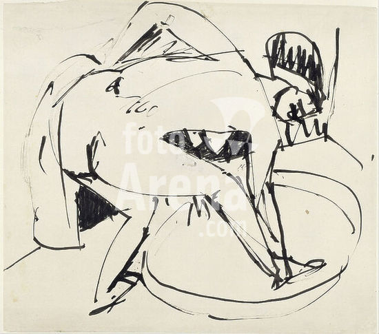 alb3896745 Girl in tub. Date/Period: Ca. 1913. Paper. Reed pen and black ink reed pen and black ink. Height: 335 mm (13.18 in); Width: 380 mm (14.96 in). Author: ERNST LUDWIG KIRCHNER.