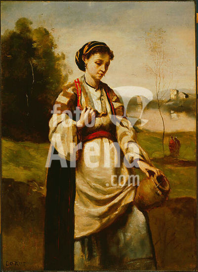 alb3907496 Woman with Water Jar. Painting. Oil on canvas. Height: 23.38 mm (0.92 in); Width: 17 mm (0.66 in). Author: Jean-Baptiste Camille Corot.