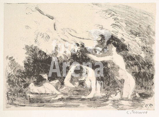 alb4100420 Women Bathing in the Shadow of a Wooded Riverbank (Baigneuses à l'ombre des berges boisées). Dimensions: 40.7 cm x 59 cm, 15.5 cm x 21.8 cm. Museum: Van Gogh Museum, Amsterdam. Author: CAMILLE PISSARRO.