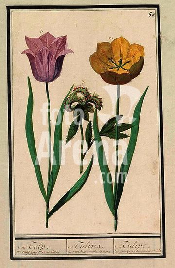 alb4116320 Tulp (Tulipa) en pioenroos (Paeonia). 1.2. Tulp. 3. saet van mannekens pioene / 1.2. Tulipa. 3. paeoniae maris semen. / 1.2. Tulipe. 3. semende de pivone mâle (title on object). Draughtsman: Anselmus Boëtius de Boodt. Draughtsman: Elias Verhulst. Dating: 1596 - 1610. Place: Praag. Measurements: h 253 mm × w 165 mm. Museum: Rijksmuseum, Amsterdam.