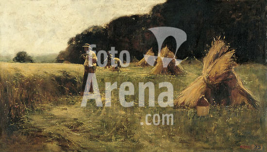 alb4156692 Léon-Augustin Lhermitte (Mont Saint-Père, 1844 -París, 1925). The Harvesters (ca. 1870 - 1880). Oil on canvas. 30.7 x 53 cm. Museum: Museo Nacional Thyssen-Bornemisza, Madrid.