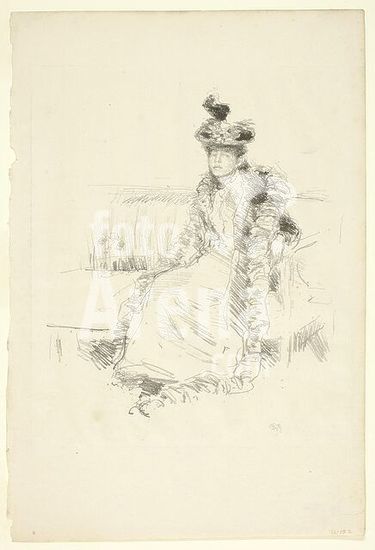 alb4162558 A Lady Seated. James McNeill Whistler; American, 1834-1903. Date: 1893. Dimensions: 193 x 172 mm (image); 307 x 207 mm (sheet). Lithograph, in black ink, with scraping and touches of brush and tusche, on cream laid paper. Origin: United States. Museum: The Chicago Art Institute, USA.