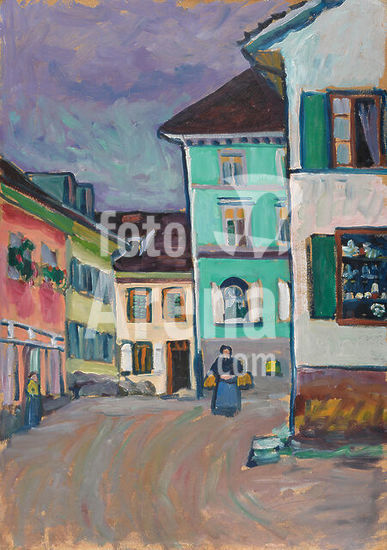 alb4156616 Wassily Kandinsky (Moscow, 1866-Neuilly-sur-Seine, 1944). Murnau: Houses in the Obermarkt (1908). Oil on cardboard. 64.5 x 50.2 cm. Museum: Museo Nacional Thyssen-Bornemisza, Madrid.