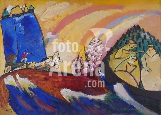 alb4210784 Painting with Troika. Vasily Kandinsky; French, born Russia, 1866-1944. Date: 1911. Dimensions: 27 3/8 × 38 5/16 in. (69.7 × 97.3 cm). Oil on cardboard; in artist's painted frame. Origin: Germany. Museum: The Chicago Art Institute, USA. Author: WASSILY KANDINSKY.
