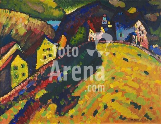 alb4210812 Houses at Murnau. Vasily Kandinsky; French, born Russia, 1866-1944. Date: 1909. Dimensions: 19 1/4 x 25 in. (49 x 64 cm). Oil on cardboard. Origin: Germany. Museum: The Chicago Art Institute, USA. Author: WASSILY KANDINSKY.