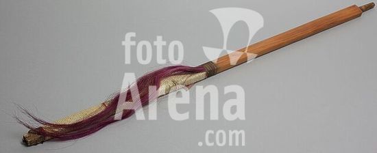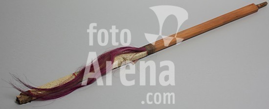 akg7668799 Sioux, Native American, Pipe Stem, ca. 1885, wood, porcupine quills, horsehair, sinew and mallard duck scalp, Overall: 3/4 × 30 1/8 × 1 1/2 inches (1.9 × 76.5 × 3.8 cm).
